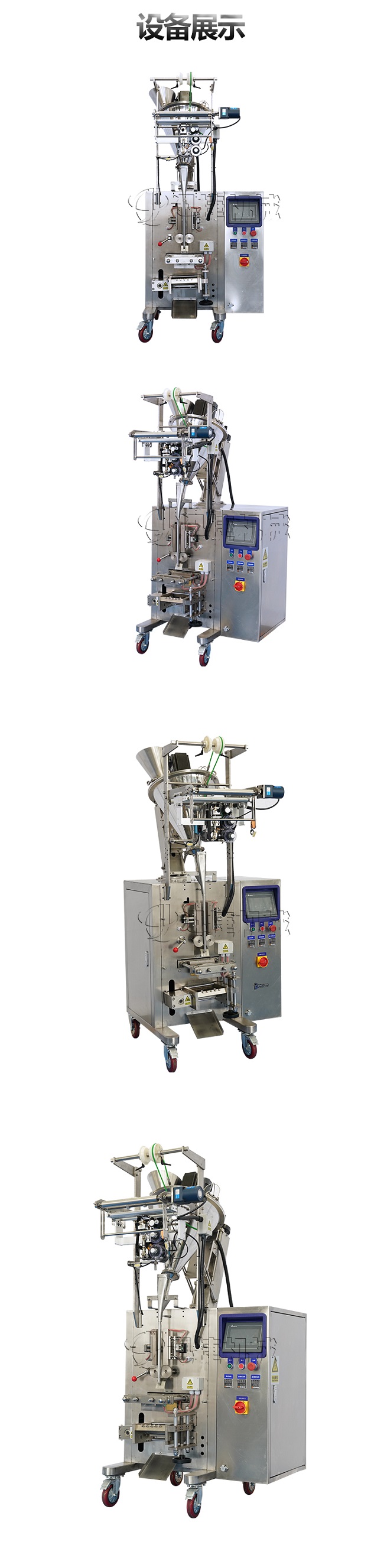 粉劑包裝機,可完成三邊封、四邊封、背封、異形狀袋形,可對粉末狀狀物料進行定量包裝。