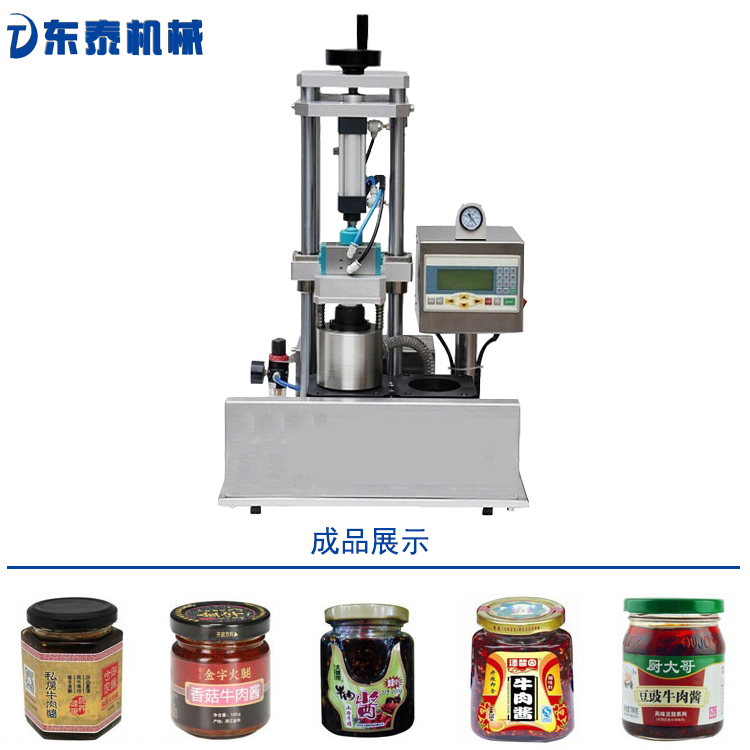 小型真空旋蓋機,也可以稱之為半自動真空封口機,辣椒醬、罐頭真空旋蓋機。