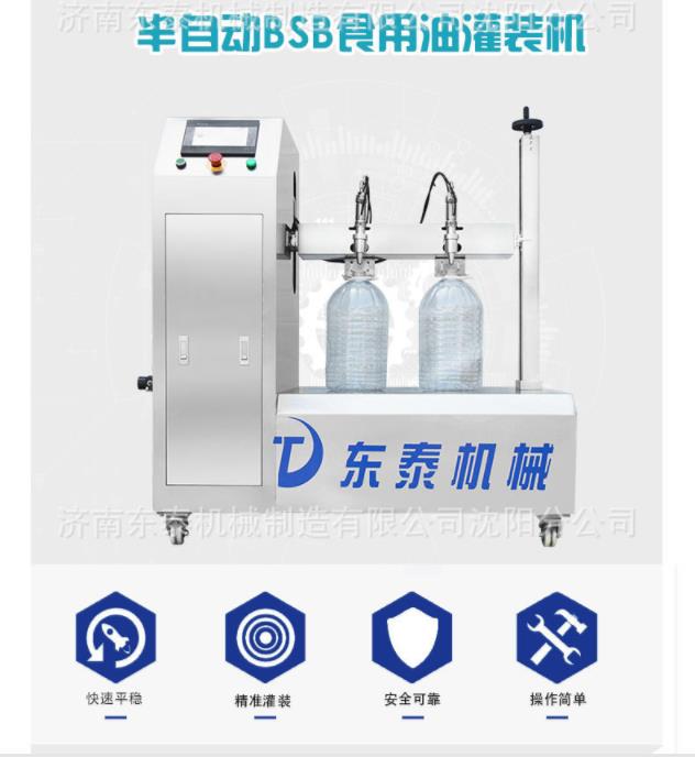 這款機器適用于花生油、大豆油、菜籽油、色拉油、芝麻油、石油化工潤滑油等各種油類和粘稠液體的定量灌裝。灌裝精度高,是一款專業設計、結構精密的油類灌裝機。BSB半自動食用油灌裝機的主要功能就是灌裝,其他附帶功能比較少。BSB食用油灌裝機技術、性價比高,而且這款機器不像全自動食用油灌裝機那樣占地面積大和高成本。BSB半自動油類灌裝機體積小,占地面積小,而且成本比全自動油類灌裝機低很多,可以配合油脂灌裝生產線一起使用,也可以單使用,靈活方便、易操作。大家可以根據自己的實際情況選擇適合自己的產品。