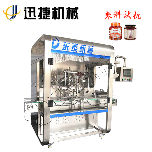 因XO醬里面都是含有肉塊的,像是香菇牛肉醬,里面的牛肉塊和香菇塊一般顆粒都比較大,普通的醬料灌裝機根本不能灌裝,這可怎么辦呢?要是光用人工,人工費昂貴不說,衛生條件更是不好控制。在此背景下,我們迅捷機械設計并生產了全新的XO醬灌裝機。